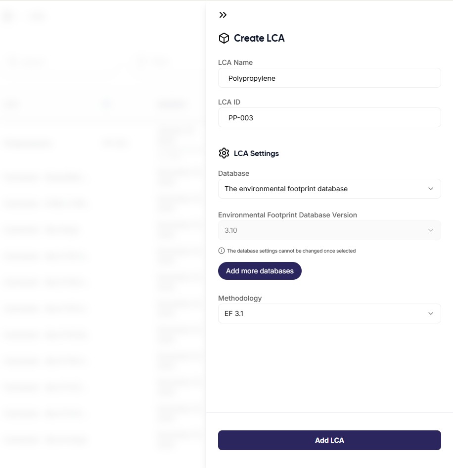 To improve traceability and provide a clearer overview of component origins, we recommend defining suppliers before creating LCAs.